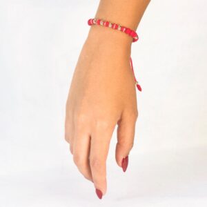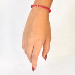 PULSERA BALINERIA ROJA ORO BLANCO Y DORADO