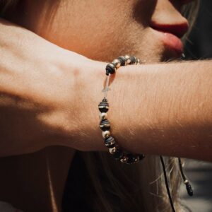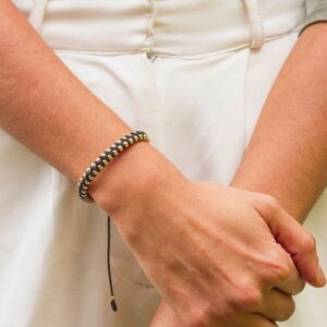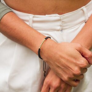 PULSERA BALINERIA NEGRA ORO BLANCO Y DORADO